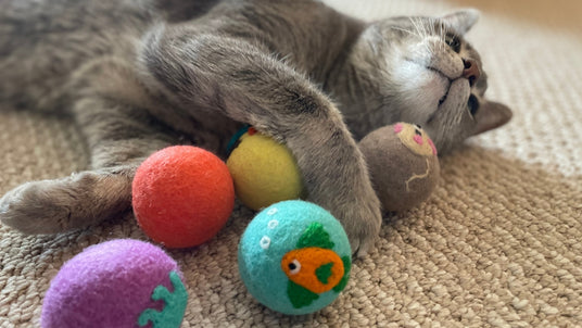 Every detail is hand-felted by skilled Nepali artisans, from the carefully stitched mouse face to the vibrant polka dot balls. Their durable design ensures long-lasting fun, while their playful shapes and patterns delight both pets and their people.