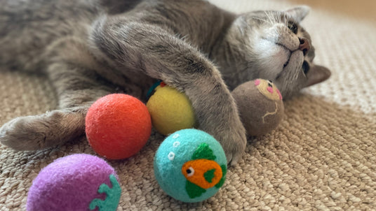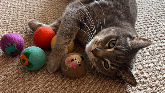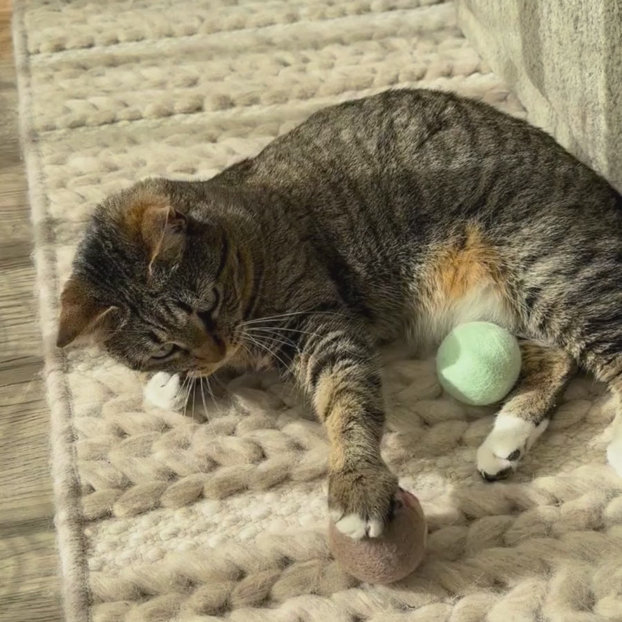 HANDMADE: These 2 inch round cat toy balls will last longer than traditional cat toys and won’t fall apart. Handfelted (not glued in a factory) with 100% premium New Zealand Wool by women of underprivileged communities in ethical working conditions, earning a fair wage, using pain free and cruelty free shearing practices. Our dyes and manufacturing processes are planet-friendly, certified Azo-free and lead-free