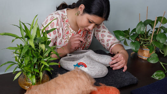 Regular price $8500Unit price /UnavailableLove Ewe Hand-Felted Organic Wool Slippers for Women (Peace-LG)