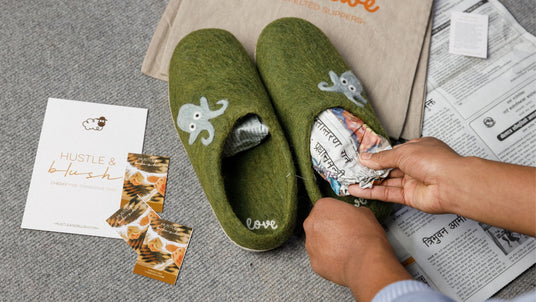 Regular price $8500Unit price /UnavailableLove Ewe Hand-Felted Organic Wool Slippers for Women (Blu-G)