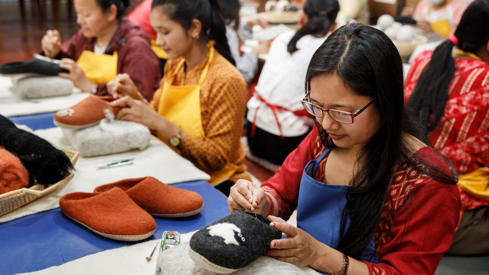 Yes. Each pair is hand-felted from organic New Zealand wool by women artisans in Nepal, with every detail, from the suede sole to the felted sheep, crafted individually.