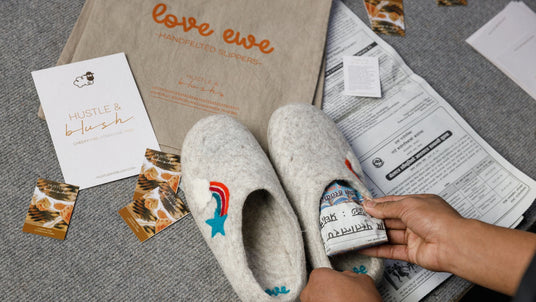 Every Hustle & Blush slipper begins with respect, for the artisans, the animals, and the earth that sustains them. The wool in Rainbow-Bright slippers is sourced from cruelty-free New Zealand farms and hand-felted in small, fair-trade workshops led by women in Nepal. By choosing them, you join a mindful cycle of craft and compassion, comfort that uplifts people, preserves tradition, and honors the planet.