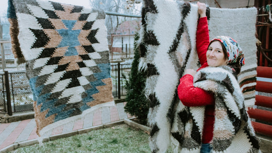 Each Hustle & Blush runner is handwoven from the wool of free-roaming Carpathian sheep, washed, spun, and crafted on traditional looms for lasting softness, strength, and authenticity. Designed as a lighter expression of heritage craft, the Myr (Peace) Runner carries warmth and balance into any space, perfect for layering across a bed, sofa, or wall.